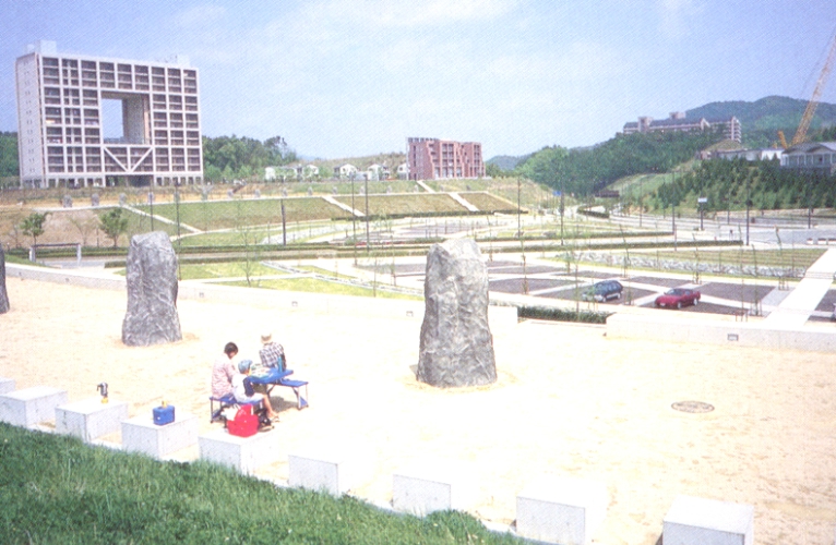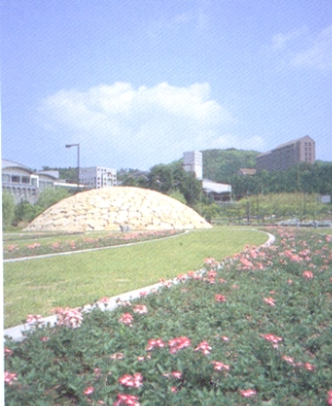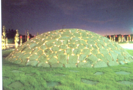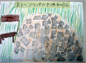 ストーンランタンは、石をつかってできています。ちょっと大きいです。中は、くうどうになっていて、電気があります。夜になると、明るく電気がついてきれいです。ストーンランタンの一番上にふたがあります。センターサークルには、ぼくのせくらいのにせものの大きい石があって、夜になると赤く光ります。センターサークルの中心は、ちゅうおうこうさてんになっています。その近くに、花や木がうえてあります。きれいです。 はじめてみたとき、ストーンランタンは、石でできていてすごいなぁと思いました。冬は、ゆきがつもってかまくらに見えました。かまくらみたいに見えたとき、大きくてすごいかまくらだなーと思いました。(やすのり) |
