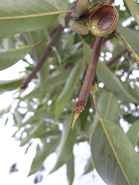 森のスポーツ広場では、オーストラリア原産のギンヨウアカシアが大きく傷つき、雨乃宮の池にある本校で一番大きなクスノキは、枝周りが人の腕(うで)ほどもある太い枝をいくつも落としています。