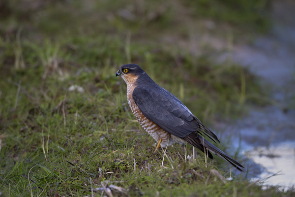 これは幸運です。空を飛ぶ姿なら未だしも、地上でハイタカを見られる機会など、そうそうあるものではありません。しかし、ここからは距離(きょり)あるため、はっきりと観察できません。そこで少しずつ接近することにしました。