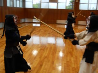 剣道部は、現在1年生2名、2年生5名の計7名で活動中です。初心者、経験者、共に基本を中心とした稽古で心身の練磨に励んでいます。