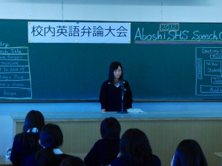 二日目の放課後には社会科教室にて「校内英語弁論大会」が開かれました。