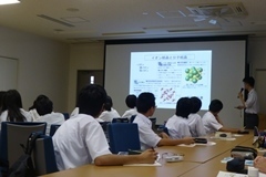 ニコチンやアルコールはもちろん、塩や水でさえ濃度や量によっては毒物となります。高血圧の薬は、低血圧の人にとっては毒です。具体的な例を示しながら、分かりやく講義していただきました。その後、施設を見学させていただきました。温度を一定に保った実験室や電子顕微鏡、巨大DNA模型などが印象的でした。