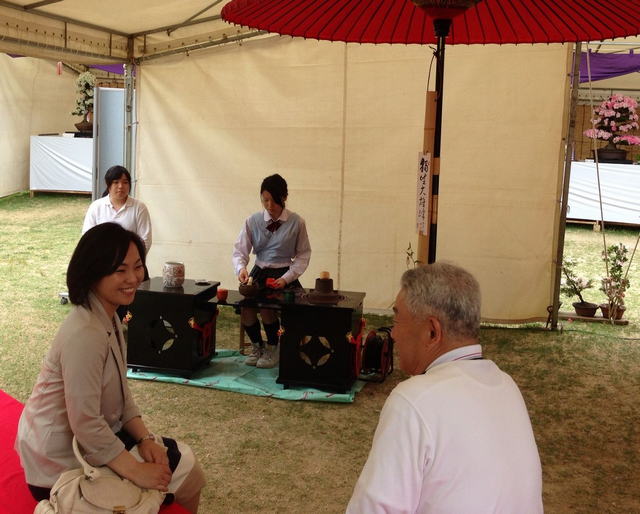 6月1日(土)阪神尼崎駅前の中央公園で、第60回尼崎皐月展が行われ、本校茶華道部も他校と一緒に お茶席をもうけ、訪れた市民の皆さまに静かな時間を過ごしていただきました。