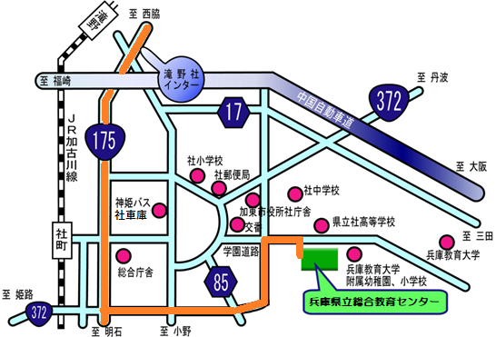 ・右手に「加東市認定こども園」が見えれば、その先が「兵庫県立総合教育センター」です。