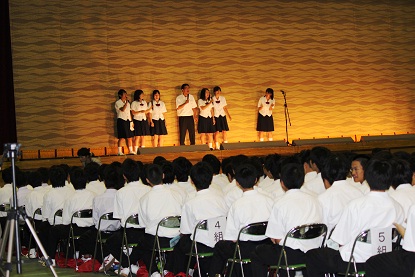 陸上競技部部員による歌での応援