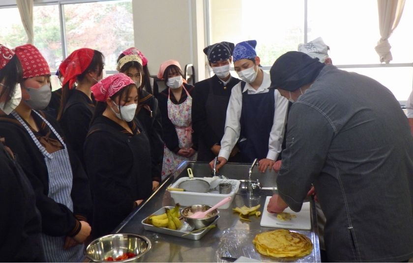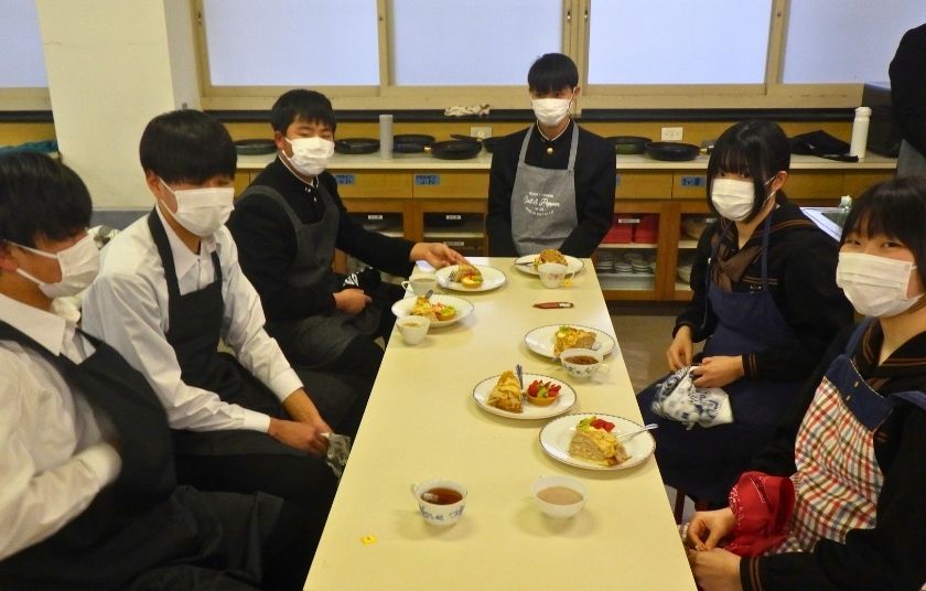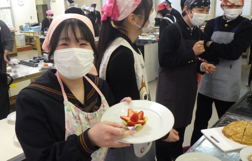 プロに学ぶ!1年生が製菓体験を行いました 1年生の家庭科の授業で、新杵のパティシエ 岡崎様をお迎えし、製菓体験を行いました。 フルーツのカッティングや盛り付けのコツを教わりながら、ミルクレープとフルーツタルトづくりに挑戦。 プロの技に驚きながらも、一つひとつ丁寧に仕上げていきました。 完成後は、自分たちで作ったスイーツでティータイム。口いっぱいに広がる甘さと、自分たちで作り上げた充実感で、教室中に笑顔があふれる時間となりました。 ミルクレープづくり 完成したフルーツタルト 完成後のティータイム 1月13日 1学年