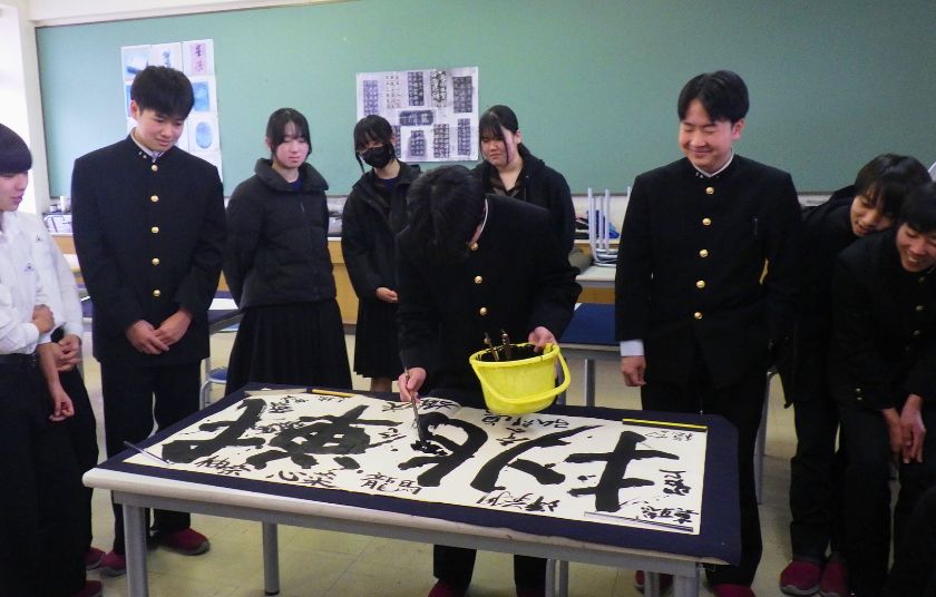 書道Ⅰ(1学年)および書道Ⅱ(2学年)を選択している生徒が、今年度最後の授業として作品制作に取り組みました。