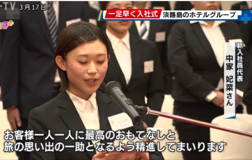 淡路島のホテルグループで一足早い入社式