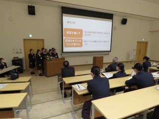 2月19日(木)看護科1年生は、高齢者大学での実習発表会をおこないました。当日は文教府の方や、高齢者大学アカデミー生の方々も参加してくださいました。