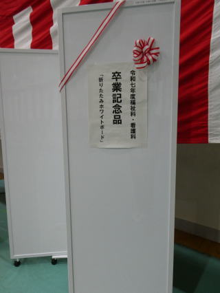 沢山の祝詞ありがとうございました。卒業記念品は折りたたみホワイトボードです。