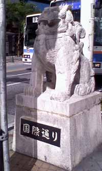 | 観覧車が目印のアミューズメント施設で昼食を含め、自由に過ごしました。 | 気温も上昇し、やや歩き回るのも疲れました | 国際通りのシーサーです |
