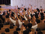 | 生徒会長からお礼の言葉と、副会長から花束の贈呈がありました。 スマイルさん、笑福亭鶴笑さん、MORTAL COMBATさん、XTRAPさん、本当にありがとうございました! |