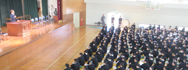 | いよいよ冬休みです。学校から離れて行動することが多くなっていきます。この冬休み中も、ぜひ困ってる人がいたら手助けしてあげてほしいし、1番身近な方々のはお手伝いをどうかしてください。 もう1つは明確な目標を持って休みを過ごしてほしいと思います。 ぜひ目標を明確に定め、いい機会です。自分を磨く冬休みにしてください。自分のなりたい人物を、自分がこうありたいところに進んでほしいなと思っています。 自分磨きの冬休みにしてもらい、そして、悩みを抱えていたりする人は必ず誰かに相談するようにしてください。くれぐれも自分1人で抱え込むことのないように、誰かに相談すること。 そして、また1月8日にこの場所に集まって3学期、良いスタートができる冬休みにしてほしいと思います。 |