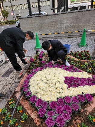 | 植栽中にはたくさんの通行人の方が長く足を止めて、また「かわいいわね」「きれいね」とお声をかけてくださいました。みなさんもぜひ現地で部員たちの力作をご覧になってください。 | ||||