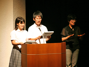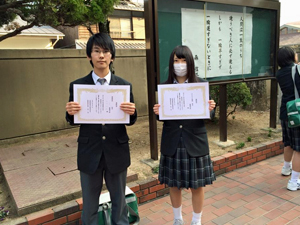 アナウンス部門 3年 御栗海渡 (佳作) アナウンス部門 3年 安田明莉 (佳作) 朗読部門 2年 梅崎裕誠 (佳作)