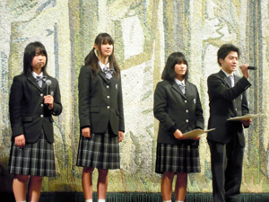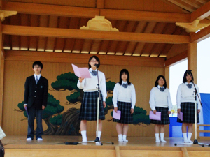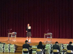 朗読部門 2年 岡田祈織 (入選 県大会出場) アナウンス部門 3年 岩佐卓弥 (入選 県大会出場) アナウンス部門 1年 森井静香 (佳作 県大会出場補欠)