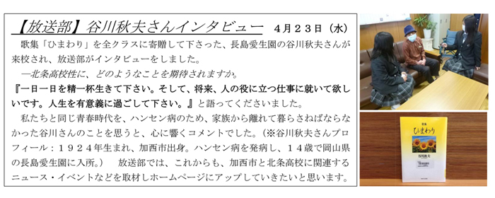 5月1日 本校の学校通信に放送部の活動が掲載されました。