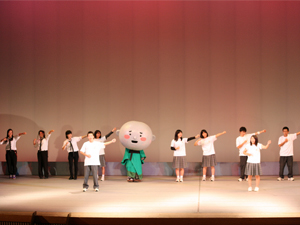 加西市民会館で行われた若者主役宣言シンポジウムに参加しました。 ダンスチームによるダンスとふるさと創造部全員による「らかんくんマーチ」を披露しました。