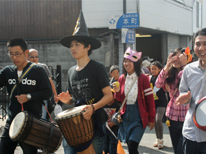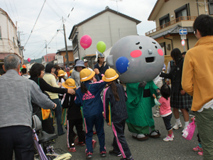 北条の旧市街地で行われた北条の宿はくらんかいに参加しました。 北条高校ブースではらかんくんに関するクイズを出題、参加賞としてお子様にらかんくんマグネットをプレゼント! ゆるキャラパレードでは加西市の「ねっぴ〜」をはじめ、西脇市の「にっしー」、加東市の「加東伝の助」、 はりま酒文化ツーリズムの「もりりぃ」と一緒に北条の旧市街を練り歩きました。 「らかんく〜ん!」と声をかけていただいたり、記念撮影を頼まれたりと他のゆるキャラにも負けない人気振りでした。 午後のハロウィンパレードにも急遽らかんくんが参加! ふるさと創造部のメンバーも打楽器を打ち鳴らしてパレードが盛り上がるようにお手伝いをさせていただきました。