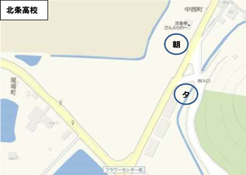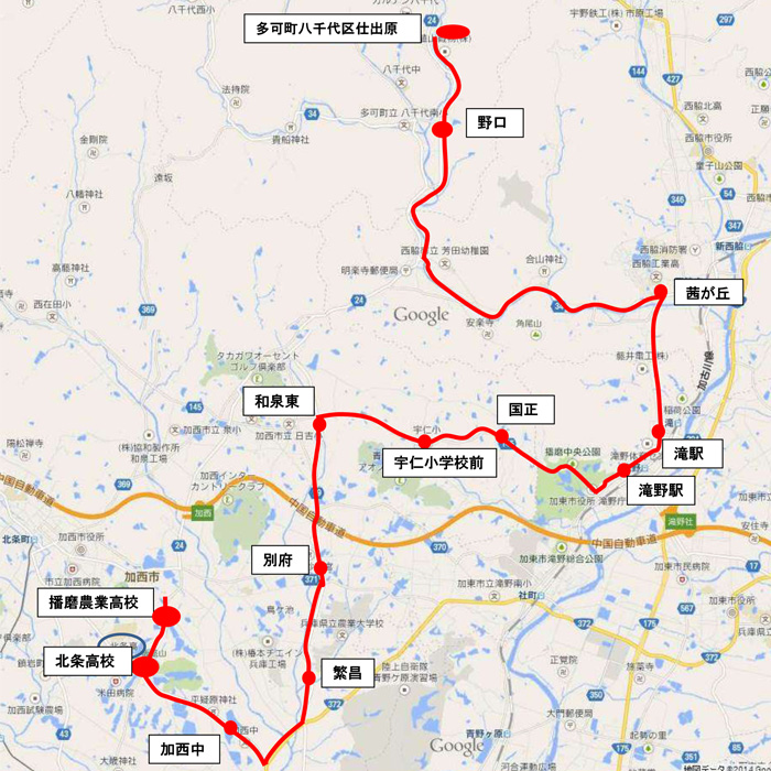 平成27年度より、このようなルートで北条高校へのバスが運行されます。