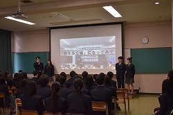 本校の特色類型「探究と表現類型」の1・2年生による活動発表会を行いました。中学生や保護者、学校評議員の方々にも見ていただきました。発表では、1・2年生の代表生徒が、自分たちの探究テーマやこれまでの学びの過程、そこから得た気づきについて、堂々と発表しました。それぞれが自分の言葉で伝える姿からは、日々の探究活動を通して培ってきた思考力や表現力の成長が感じられました。 また、3年生は「探究と表現類型」での学びが自分自身の進路選択にどのようにつながったのかを振り返りながら発表しました。自らの経験をもとに、これから進路を考えていく後輩や中学生へ温かいエールを送る姿は、とても印象的でした。