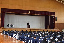 生徒総会を行いました。生徒会役員より生徒会費の決算、予算案の説明があり、賛成多数により承認されました。