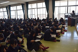 1学年がオリエンテーション合宿の結団式を行いました。(2026.04.11) 4月13日から行われる新入生オリエンテーション合宿の結団式を本日、多目的ホールで行いました。引率教員の紹介の後、校長先生より合宿の意義についてお話しいただき、学年の先生としおりを見て、日程やルール、持ち物や役割等の確認を行いました。高校最初の宿泊行事をみんなで盛り上げ、成功させましょう!