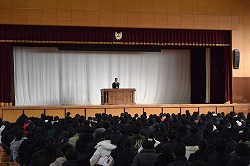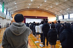 3学期始業式を行いました。(2026.01.08) 新しい年が始まり、3学期の始業式が体育館で行われました。学校長式辞では、勉学や部活動において、日々の地道な努力を怠らず積み重ねていくことこそが、自分自身の確かな成長につながるというお話がありました。 また、生徒指導部長からは、3学期のスタートにあたり、明確な目標を持ち、無理をせず少しずつ学校生活のペースを取り戻していくことの大切さが伝えられました。 一人ひとりが自分の目標と向き合い、日々の積み重ねを大切にしながら、実りある3学期を歩んでください!