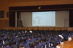 インターネット・スマホ講演会を行いました。(2026.04.22) 本日体育館にてにNIT情報技術推進ネットワーク㈱の代表取締役 篠原嘉一様をお招きし、インターネット・スマホ講演会を実施しました。知らないうちに被害者だけでなく加害者にもなりうること、なりすましや情報漏洩、依存症や心身の発達への影響など、スマホやSNSの裏側に潜む危険性について、実例をもとにお話しいただきました。これを機会にSNSの使い方を再確認し、スマホとの正しい付き合い方を考えていきましょう。