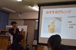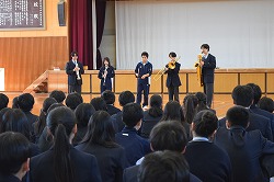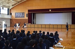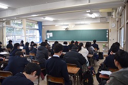 2年生特色類型の生徒たちが、「PR Nippon~日本の文化プレゼンテーション」の発表を行いました。大阪大学から5名の留学生をゲストにお迎えし、生徒たちの発表を見ていただき、さらには異文化交流の時間も持つことができました。 生徒たちはは、「世界に伝えたい素晴らしい日本文化」をテーマに、一人ひとりが約2分間、英語での発表に挑戦しました。自ら調べ、まとめ、英語で伝えるというプロセスを通して、生徒たちは日本文化への理解を深めるとともに、発信する力も養うことができました。 異なる文化的背景を持つ留学生に、自分の言葉で思いを伝えるという経験は、生徒たちにとって大きな刺激となり、国際的な視野を広げる貴重な機会となりました。