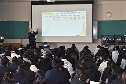 新しい年が始まり、3学期の始業式が体育館で行われました。学校長式辞では、外山滋比古さんの「思考の整理学」という本より引用し、自力で空に舞い上がり飛行できる飛行機型の人間を目指してほしい、それはつまり「自分で考えて行動し、探究すること」がますます重要であり高校生活の中で「主体的に学ぶ」姿勢を身につけることが大切だとありました。続いて生徒指導部長講話では「心機一転」という言葉を使って、3学期の始まりにあたり、これからの1年に向けて目標を持って行動することが大切であるという話でした。今年も、さまざまなことに挑戦し、自分自身を成長させる素晴らしい1年にしたいと、生徒たちは改めて決意を新たにした始業式となりました。