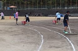 火災を想定した防災避難訓練を実施しました。「普通教室棟2階 3-3教室前から出火しました」という、出火元を知らせる放送を聞いて、誘導に従って避難を行うことができていました。実際の場合、消防車は数分で到着します。それまでに点呼完了することを心掛けたいですね。また、消火器の使用訓練も行いました。初期消火の方法など、消火器についての知識も確認することができました。