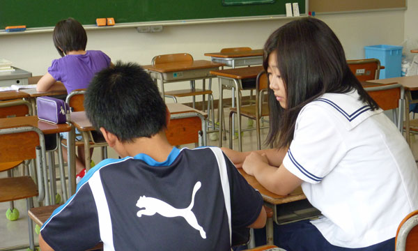 8月26日6名、27日5名の生徒が、三輪小学校において小学校スタディボランティアをさせていただきました。期間が二日間と短かったのですが、二日目にはすぐに和やかな学習モードに入ることができていました。