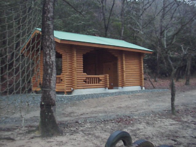神部小学校の裏山(きびたふじ)から、となりの河内小学校につながる里山 (出愛の里山)ができました。 校区のお父さん、お母さん方が協力して作ってくださった里山林道を大切に守りたいです。 入り口にあるログハウス 炭焼き施設もあるよ