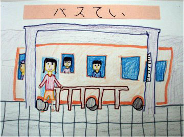 とちゅうで、バスていで休んでいるとほんとうにバスがきました。