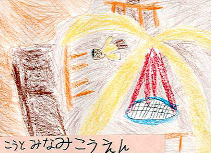 こうとみなみこうえんは、できたばかりのあたらしいこうえんです。きれいなこうえんなのに、みんなが、ゴミをすてるから、いまは、きたないこうえんです。ぐるぐるまわるブランコがあって、ようまわるのではく人もいます。ゴミばこがほしいです。ブランコは、はくからあんまりまわさないほうがいいです。てつぼうとかすべりだいとかもあります。水をのむところもあります。すべりだいは、ふつうのずべりだいとちがって。すごくひろくてすべるところからものぼれます。犬のさんぽとかあそびにくる人もいます。小学生も小さい子とかもあそびにきます。(なおき) |