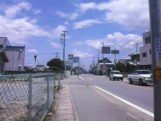 この道は、交番のまえをとおり東にむかって進んでいる道です。このへんもやはり、家がたちならんでいます。