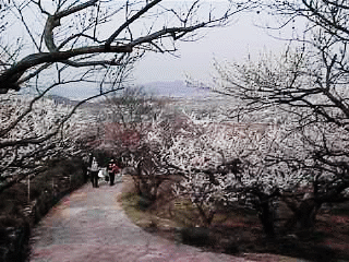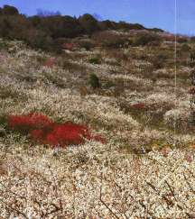 西日本随一の梅の里として知られる綾部山は,観梅期は紅梅の開花とともに始まり、やがて紅白の梅の花で埋め尽くされます。