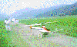 無人ヘリコプターをつかつて使って防除の風景。