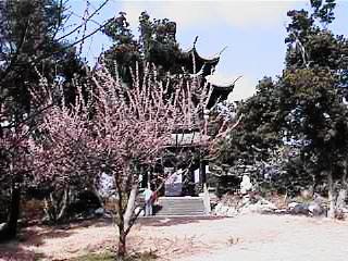 梅の木の向こうに見えるのは唐梅閣といって 中国風の建物です。ここから見る瀬戸内海は とても美しいです。 |
