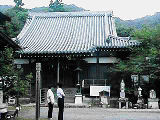 中寺・・・本堂は小さいが寄せ棟づくり、三つどもえは赤松家の 家紋で陣幕を模様化した二つ引両は足利家の家紋である。