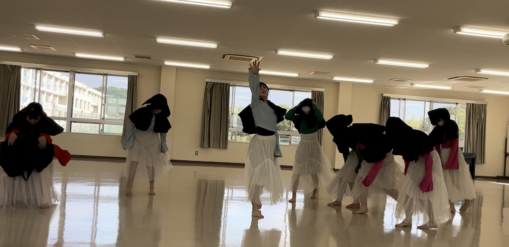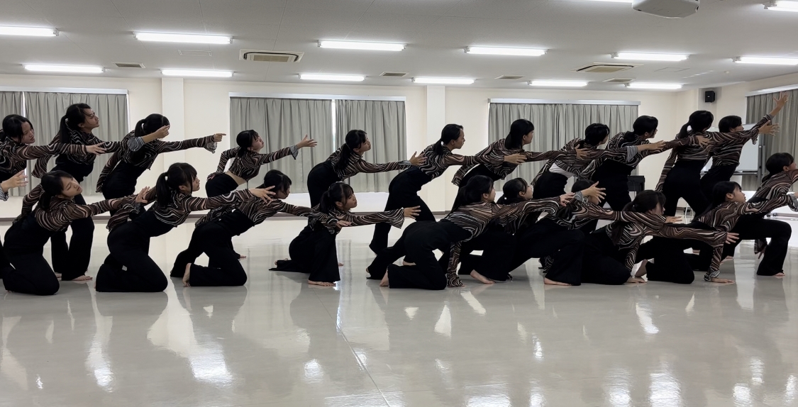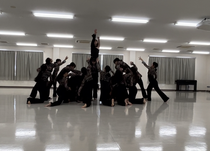 今大会は、1年生12名のみで11月から題材、構成、振付、音源編集、照明案、衣装などすべてを1年生だけで行い臨みました。作品を作り上げる中で、責任感や創造力、コミュニケーションの重要性に直面し、精神的にも技術的にも悩み苦しむことが多い日々だったように感じます。しかし日に日に部員の関係性が深まり、作品に真摯に向き合い協力して作り上げる姿には成長を感じました。入賞はできませんでしたが、自分たちで設定した目標を達成することができました。
