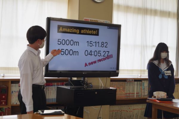 準備時間も少ない中、英語で堂々と発表していました。