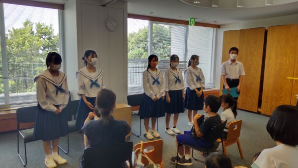 生徒は緊張しながらも大きな声でしっかり読み、生徒会の生徒も工夫しながら司会をしてくれ、参加者の皆さんにも図書館の方にも喜んで頂けました。