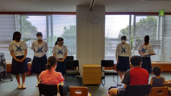 2021年7月17日(土)・18(日)に第2回、第3回のかこ北おはなし会をウェルネスパーク図書館で開催しました。室内の人数制限のため、読み手以外の生徒は室外で待機…となるほど定員一杯まで参加者がありました。