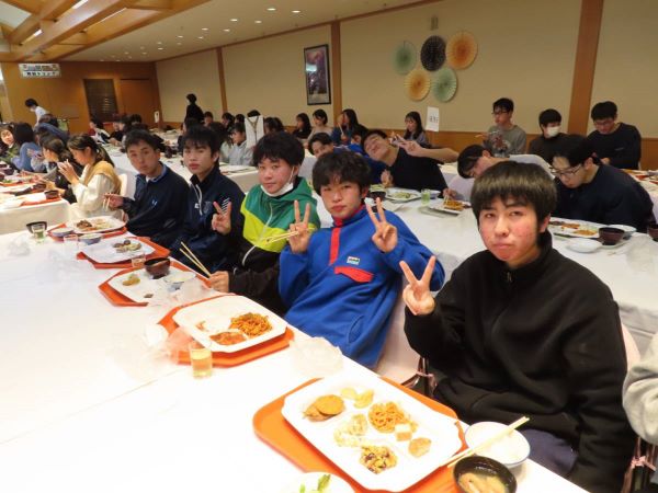 実習後は夕食を食べて、少し休んだらお待ちかねの年次レクです。 先生もサプライズで登場、修学旅行委員はクイズ大会を企画してくれました。 明日の実習を楽しみにしながら、一日目が終わりました。 「2022/01/12up]
