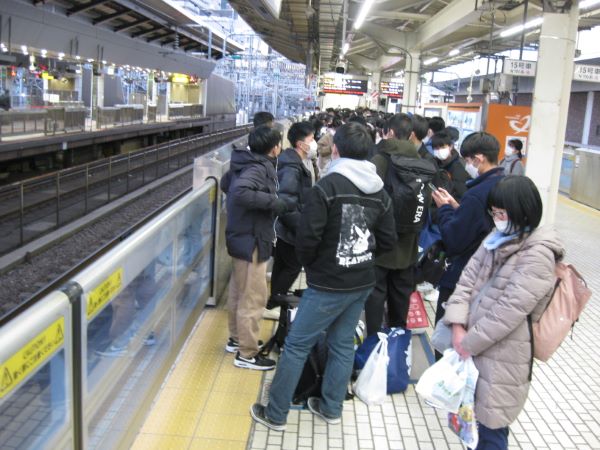 折り返しの車両に乗り込むため、清掃作業終了まで待機し、アナウンスの指示に従って、乗車し