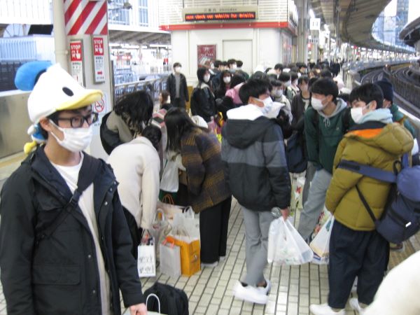午前中に舞浜駅まで行った人は、再び舞浜駅まで行き、京葉線で東京駅へ。駅構内等でお土産と夕食のお弁当を購入し、日本橋口に集合です。