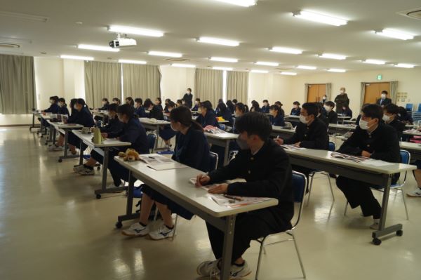 看護系を希望している生徒51名に向けたガイダンスでは、高度化する医療現場や、そこで必要とされる人材について、例を交えて話をしていただき、生徒達は真剣に説明を聞いていました。