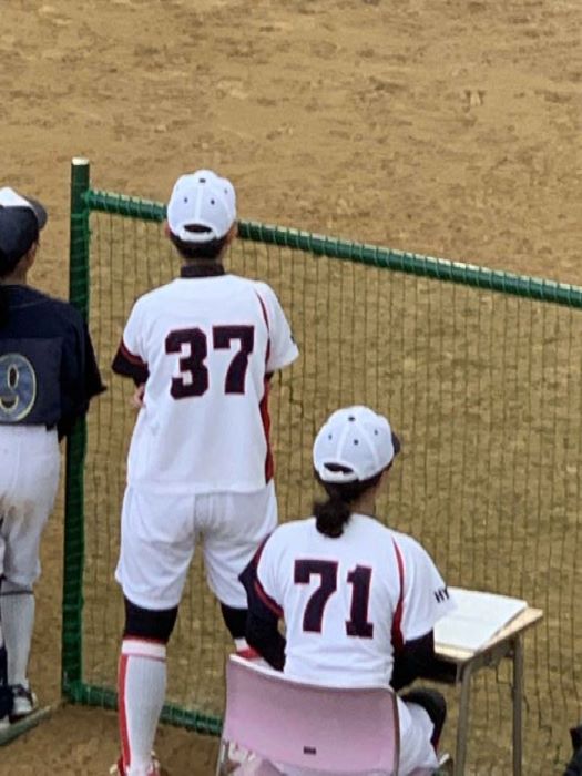 3年生2名と人数的に苦しい中でしたが、選手の久保田とマネージャーの冨井の2人3脚で頑張ってきました。また、5月から永井先生がコーチに来て下さり、熱心にご指導いただきました。その甲斐あって、入学時未経験だった久保田が最後の大会で打率8割、出塁率9割、3ベースヒットを2本含む4打点の大活躍を魅せてくれました。